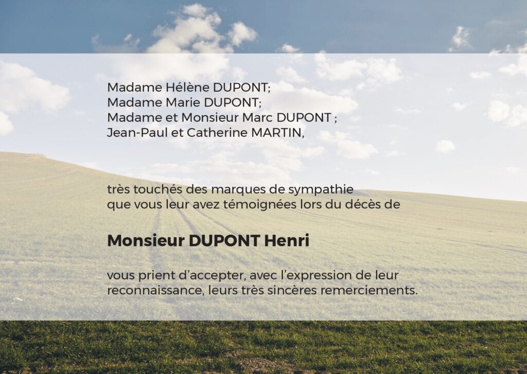 Faire-part de décès Champ à perte de vue