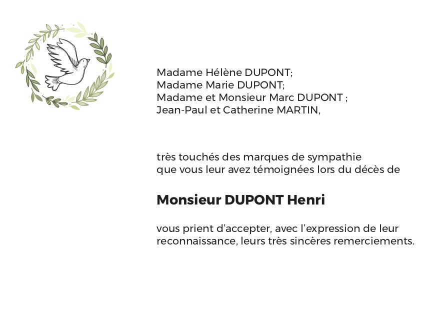 Faire-part de décès Colombe