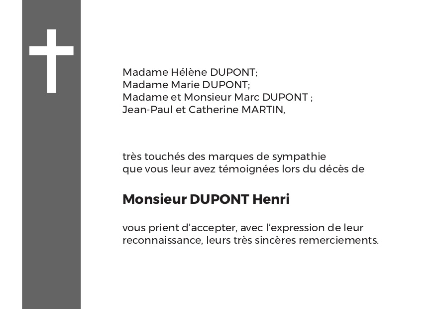Faire-part de décès Croix catholique sur bande grise